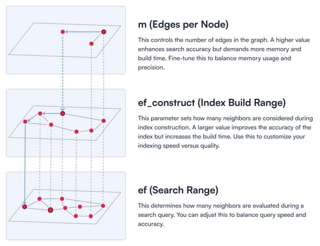 Figure 1: A description of three key HNSW parameters.
