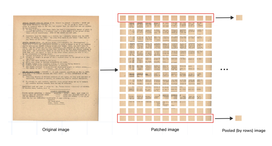 Pooling is well-known in machine learning as a way to compress data while keeping important information. For ColPali, we reduced 1,030 vectors per page to just 38 vectors by pooling rows in the document’s 32x32 grid.
